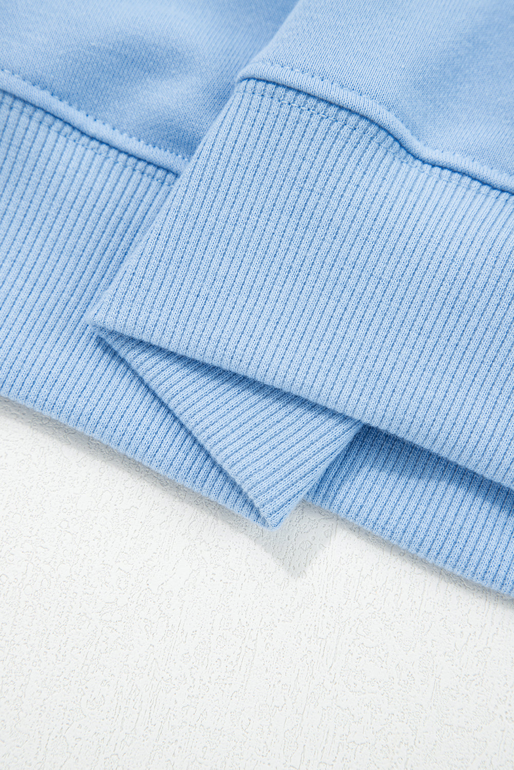 Slip into effortless comfort with this charming lounge set featuring a drop-shoulder pullover adorned with beautiful blue floral patchwork paired with matching sweatpants.