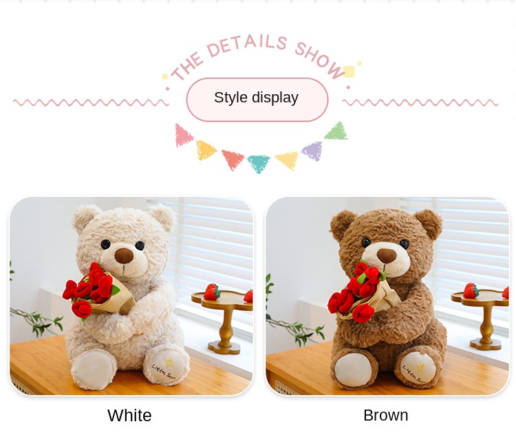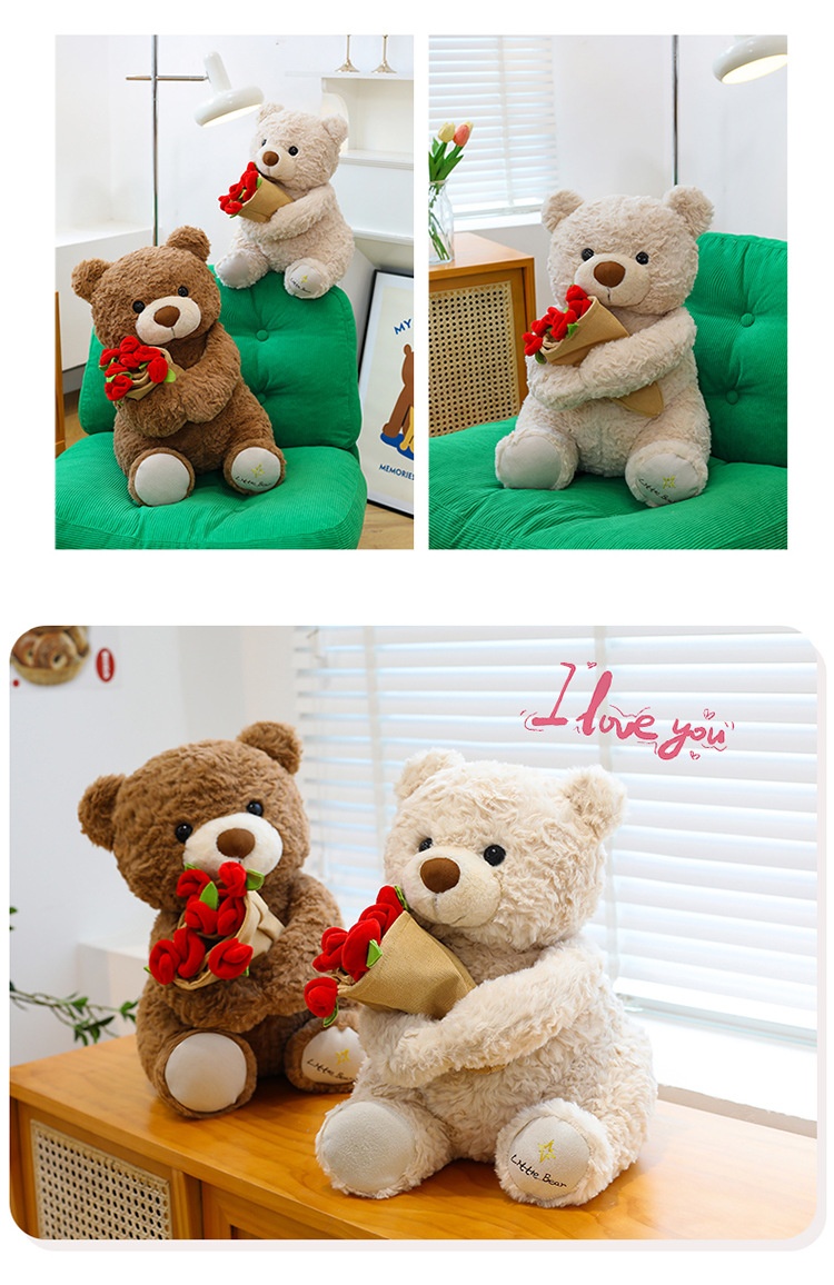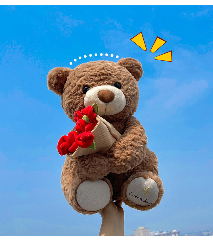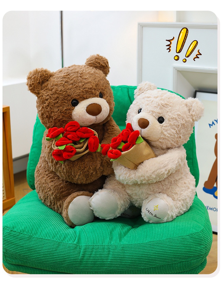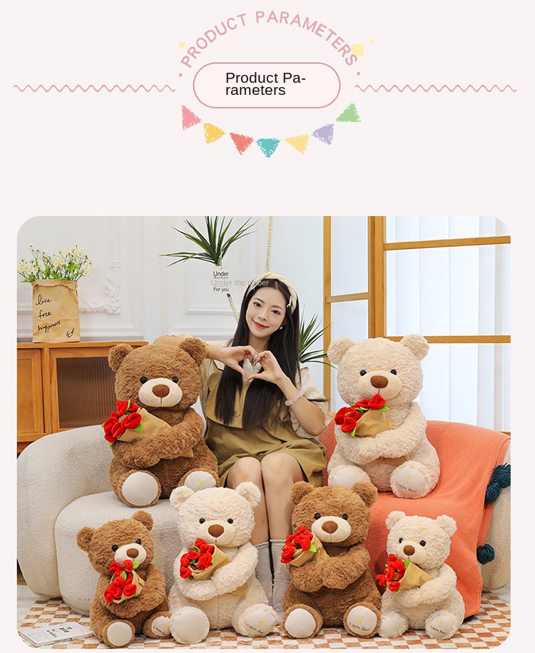 Snuggle up with this adorable stuffed bear dressed in a blooming rose flower design! Available in warm brown or soft beige, each cuddly companion features built-in magnets for creative play and display possibilities. Choose your perfect size—the compact 30cm version or the generous 38cm huggable friend. Whether you're gifting it to a loved one or treating yourself, this charming bear brings a touch of floral sweetness to any space.