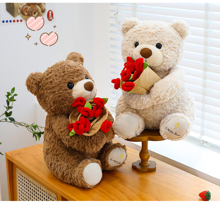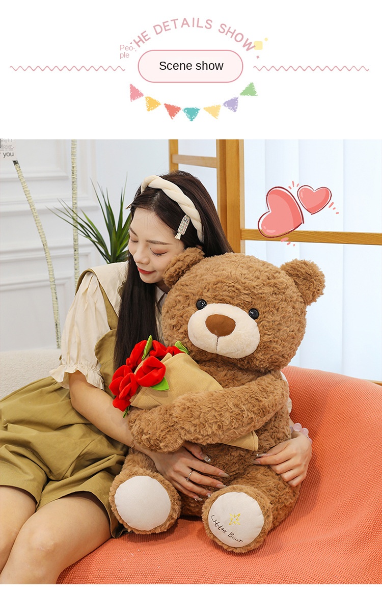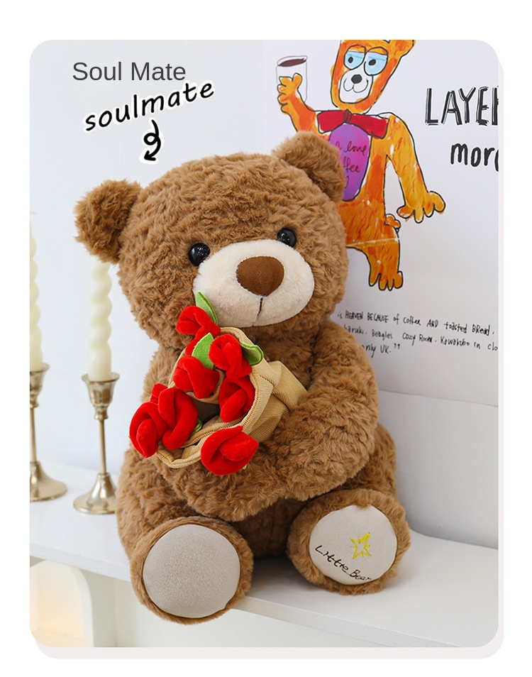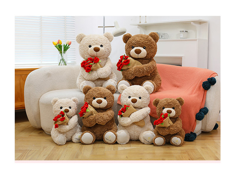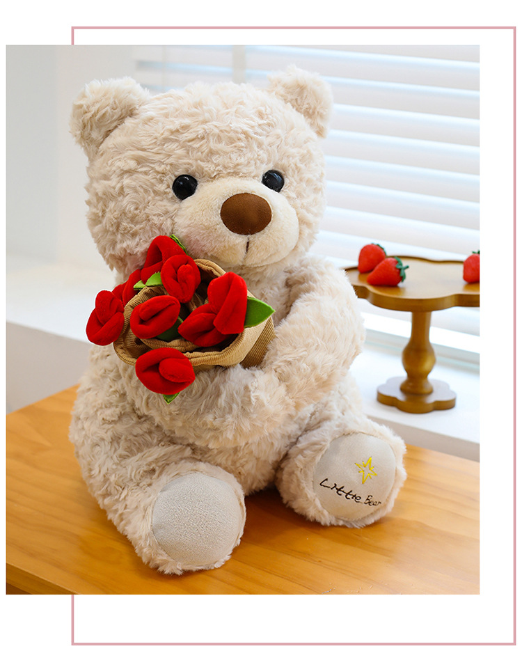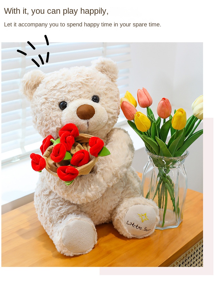 Snuggle up with this adorable stuffed bear dressed in a blooming rose flower design! Available in warm brown or soft beige, each cuddly companion features built-in magnets for creative play and display possibilities. Choose your perfect size—the compact 30cm version or the generous 38cm huggable friend. Whether you're gifting it to a loved one or treating yourself, this charming bear brings a touch of floral sweetness to any space.