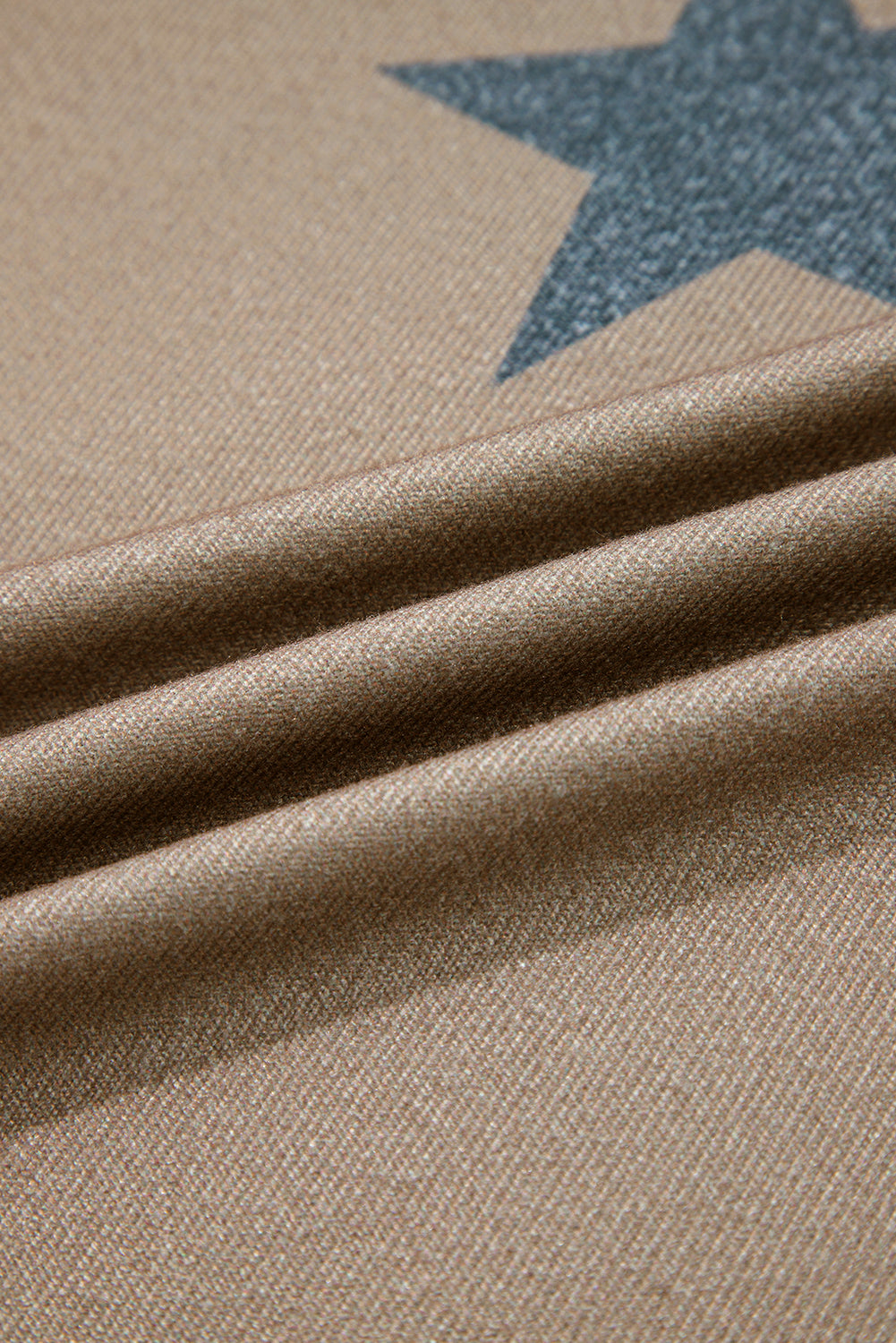 Featuring a relaxed long-sleeve top paired with roomy wide-leg bottoms, both adorned with a charming star print in warm khaki tones.