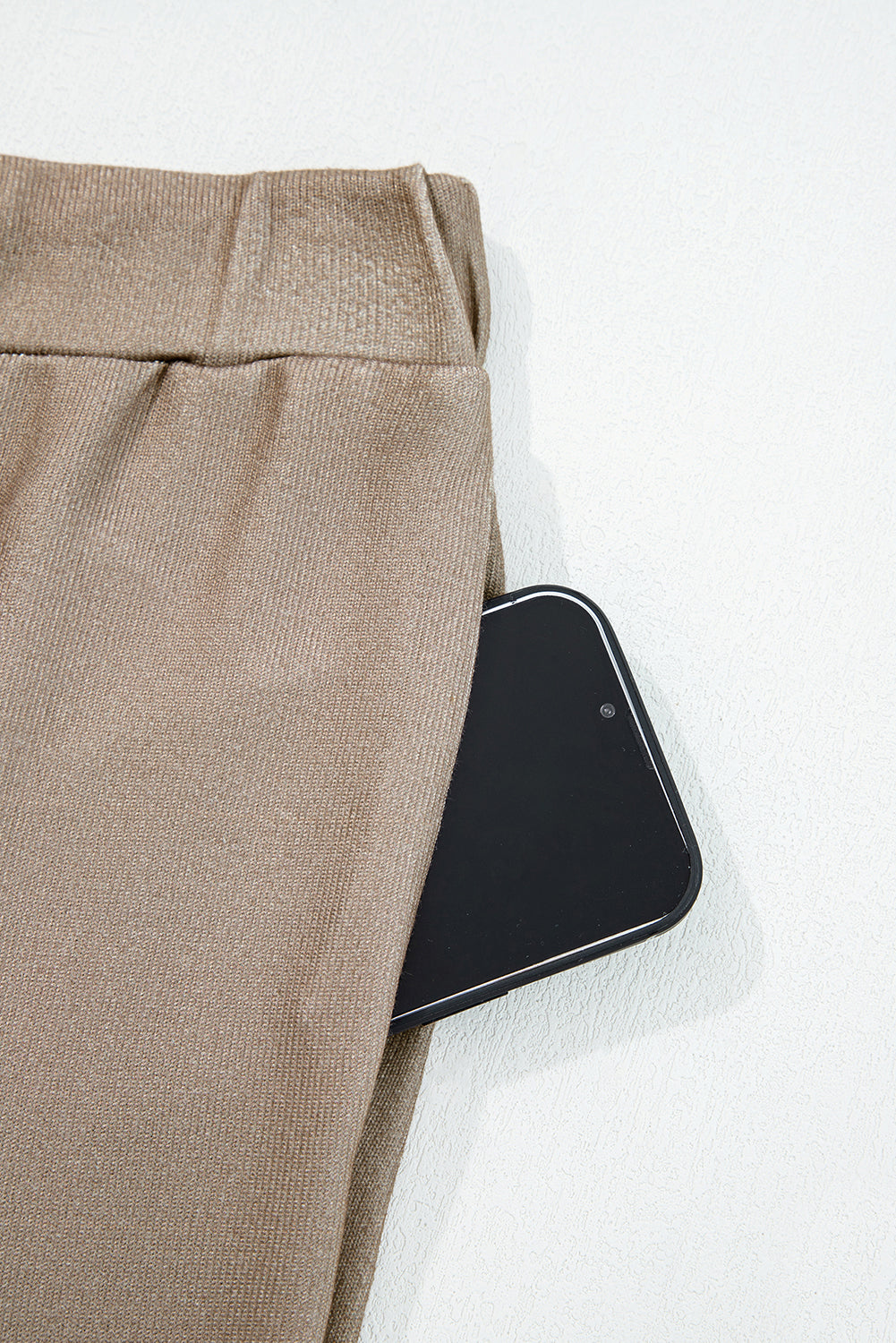 2pcs Khaki Retro Star Print Loose Long Sleeve Drawstring Wide Leg Lounge Set