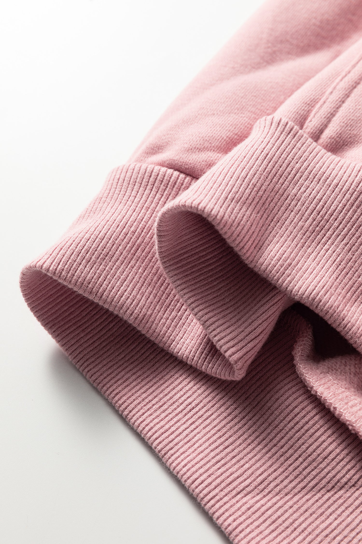 Slip into effortless comfort with this charming two-piece set featuring a peach blossom hooded pullover complete with button details and adjustable drawstring, paired with relaxed casual shorts.