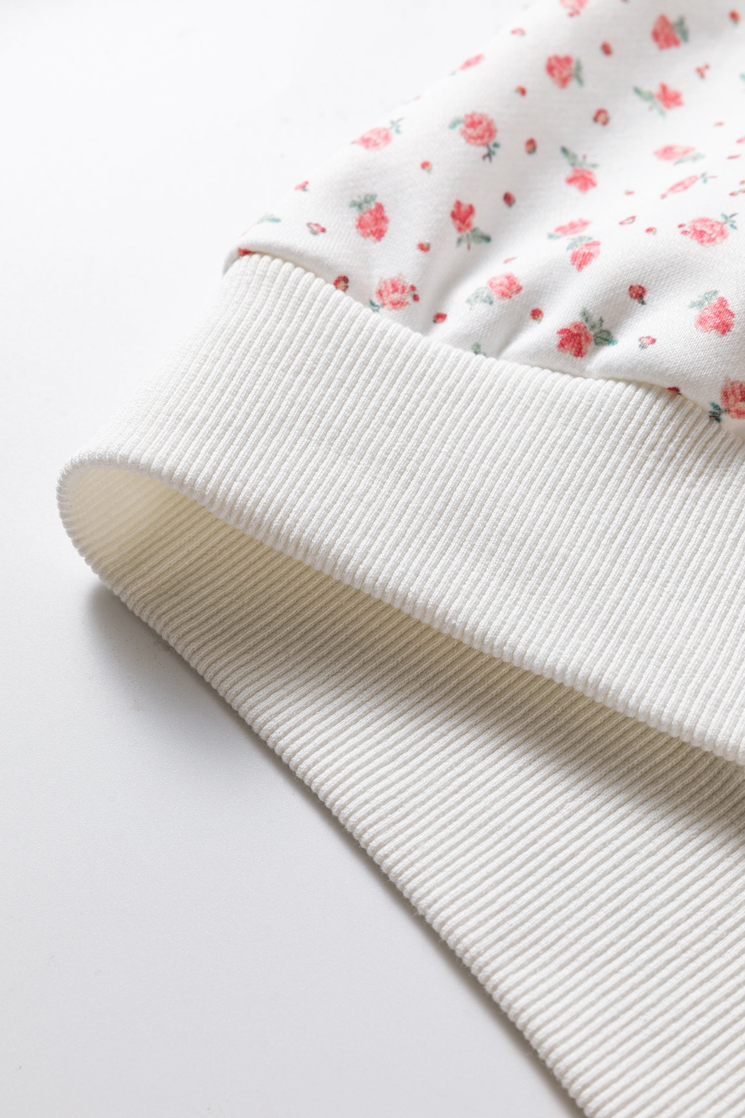 Pink Floral Print Kangaroo Pocket Hoodie Sheath Sweatpants Set