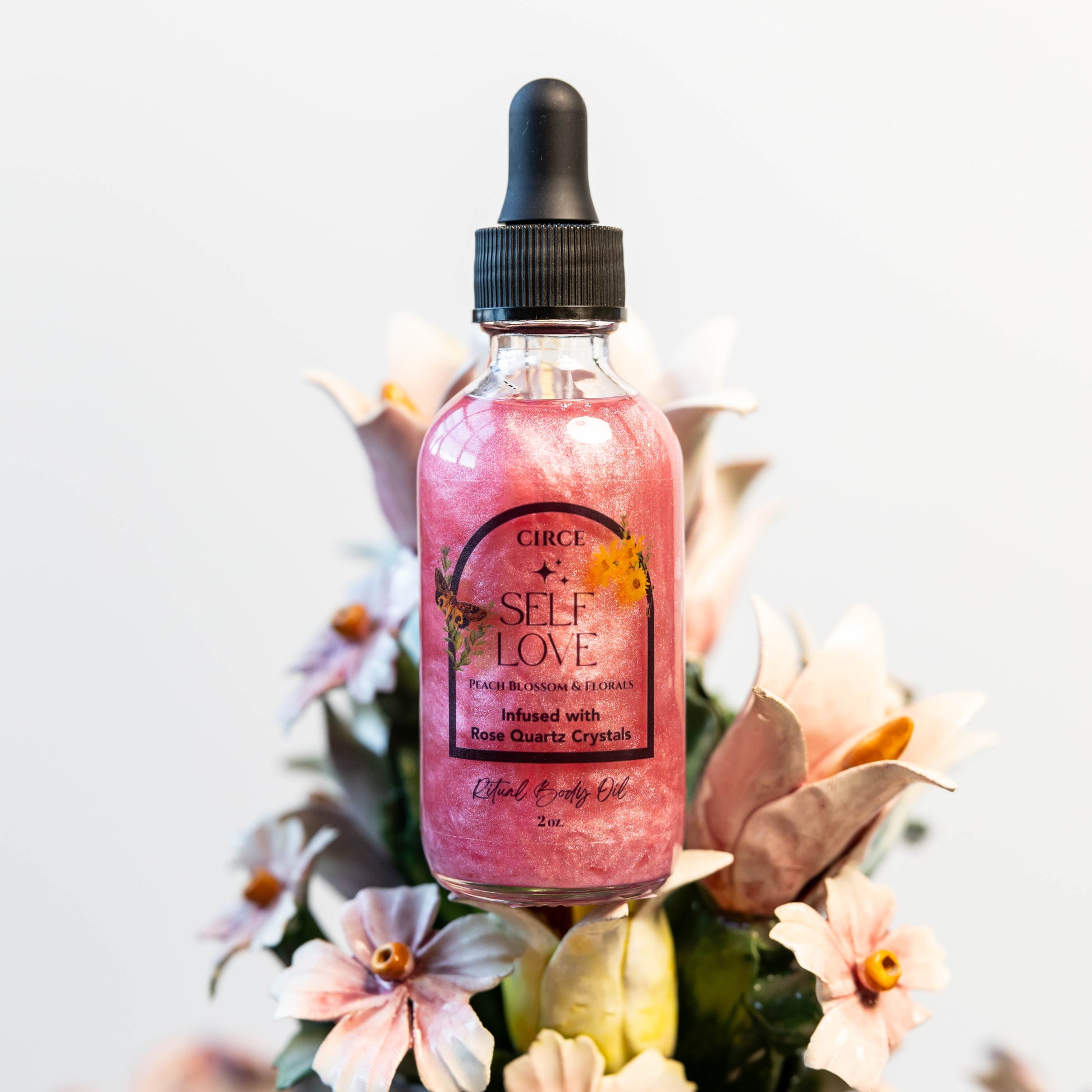Embrace self-care with this enchanting 2 oz body oil, your personal love potion in a bottle. Infused with a nourishing fractionated coconut oil base, it glides effortlessly onto skin, delivering deep hydration and a luminous glow.