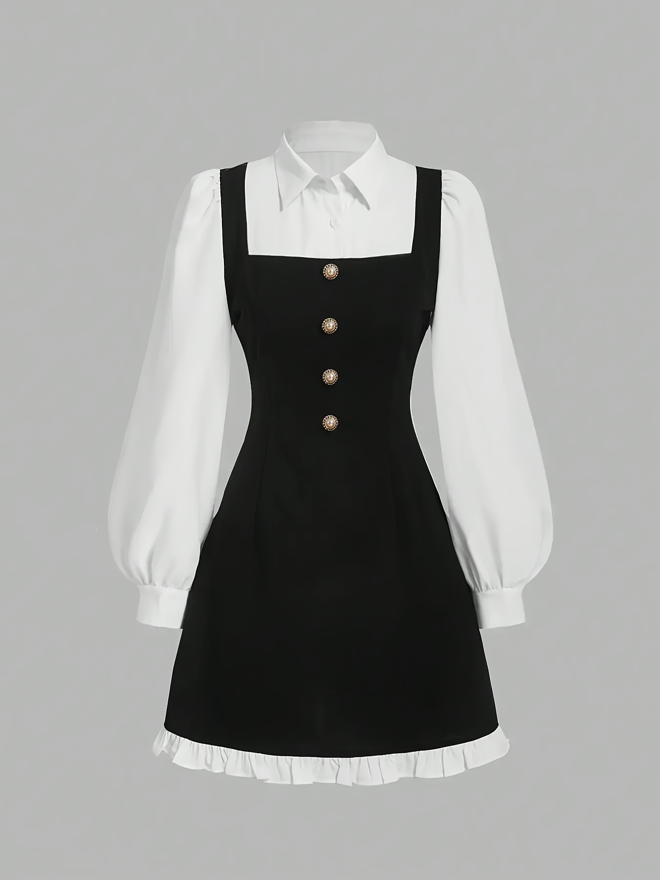 Women's Elegant Long Sleeve A-Line Dress with Contrast Trim & Tie-Waist